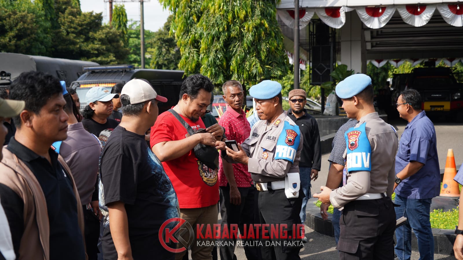 Sebelum pelaksanaan pengamanan, Bidang Profesi dan Pengamanan (Bidpropam) Polda Jateng melakukan pemeriksaan terhadap seluruh personel usai apel kesiapan di halaman Kantor Gubernur Jawa Tengah, Kamis (28/8/2025).