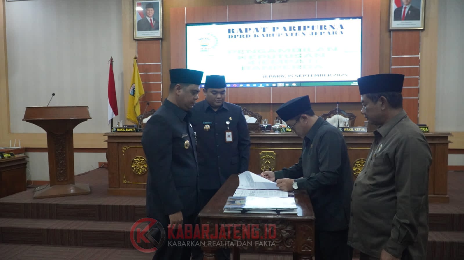 JEPARA, Kabarjateng.id – Dewan Perwakilan Rakyat Daerah (DPRD) Kabupaten Jepara bersama Pemerintah Kabupaten (Pemkab) Jepara resmi menyetujui dan mengesahkan empat Rancangan Peraturan Daerah (Ranperda) dalam Rapat Paripurna yang digelar di Gedung Shima, Senin (15/9/2025).
