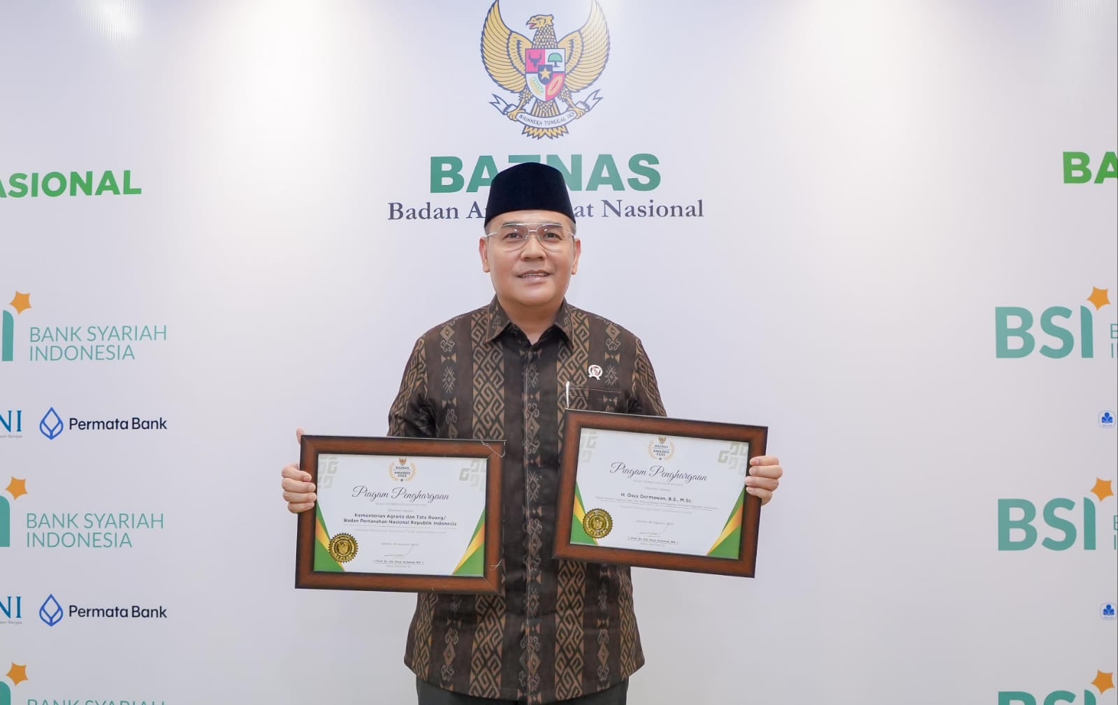 Dalam kesempatan itu, Kementerian ATR/BPN juga memperoleh penghargaan dalam kategori Lembaga Pendukung Ekosistem Zakat Sejahterakan Umat.