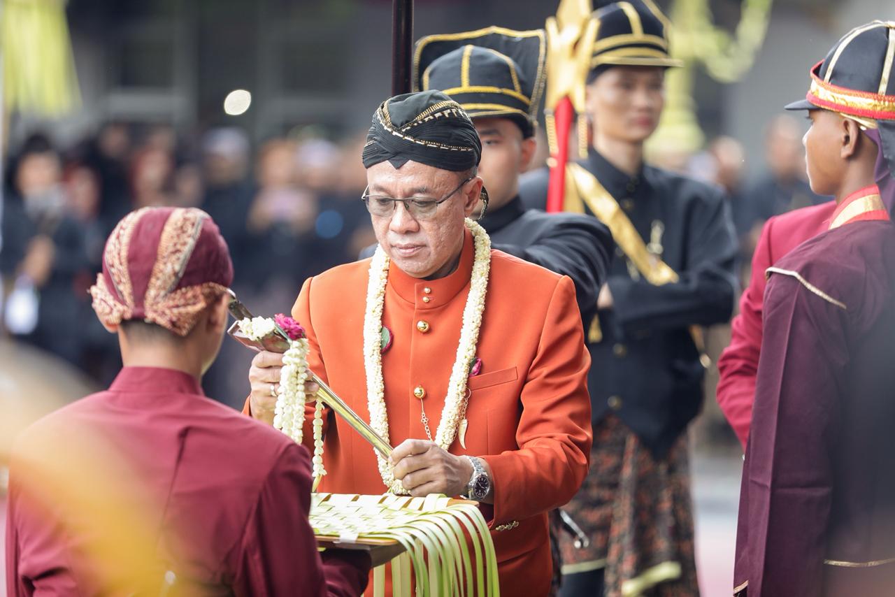 Ia menyerahkan langsung empat pusaka kebesaran daerah, yakni Tombak Kiai Genjring, Keris Nala Praja, Keris Gajah Endra, dan Keris Kiai Sempana Bener, kepada para pembawa pusaka untuk dikirabkan.