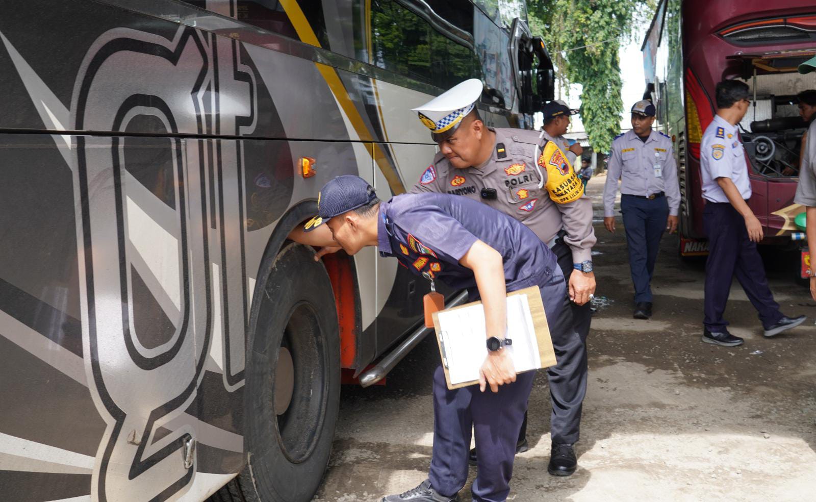 Polres Tegal Laksanakan Ramp Check Bus Pariwisata di Pool Dedy Jaya