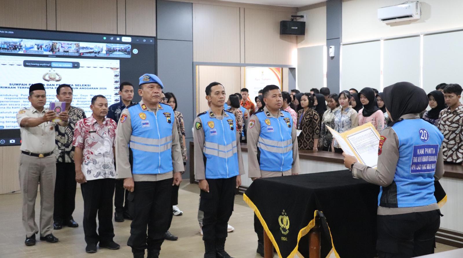 KENDAL, Kabarjateng.id — Polres Kendal menggelar pengambilan sumpah dan penandatanganan pakta integritas dalam rangka seleksi penerimaan terpadu anggota Polri Tahun Anggaran 2026.