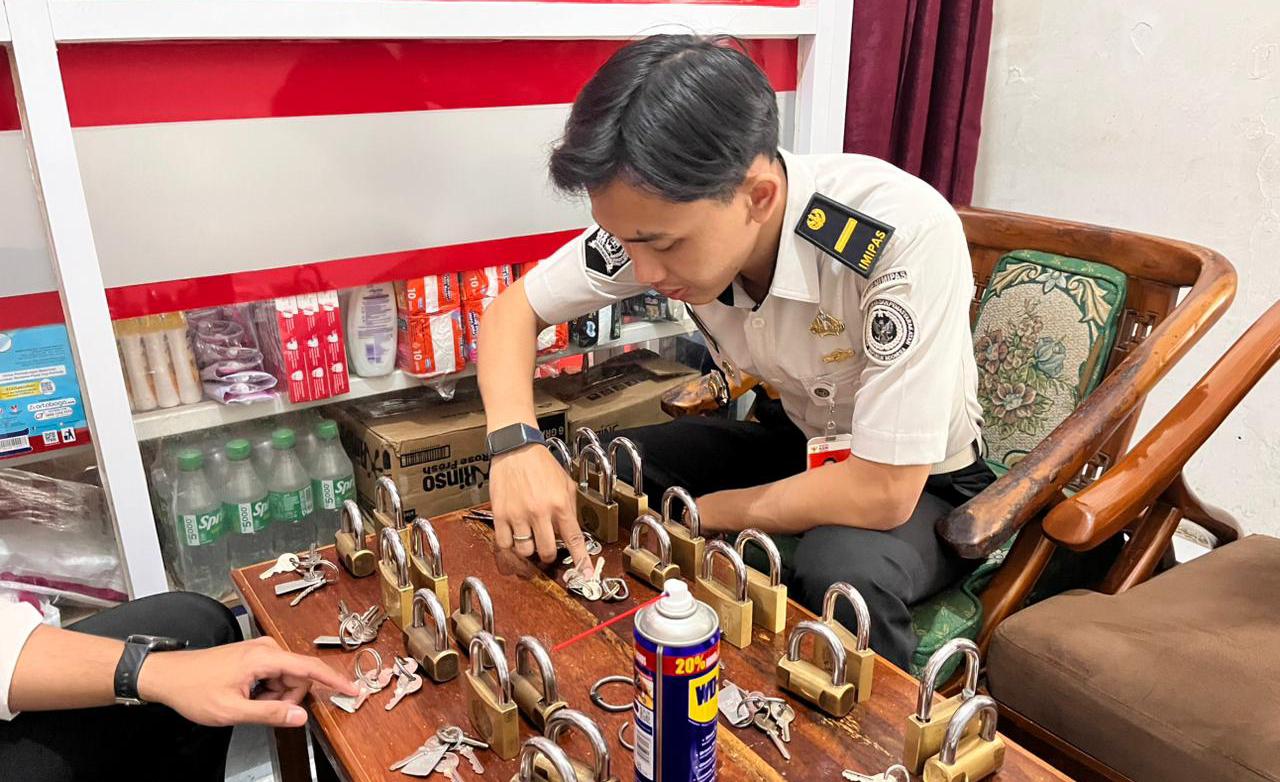 Petugas Rutan Salatiga memeriksa kondisi fisik gembok secara detail, memastikan setiap perangkat berfungsi optimal, serta mengganti sejumlah gembok di titik-titik tertentu.