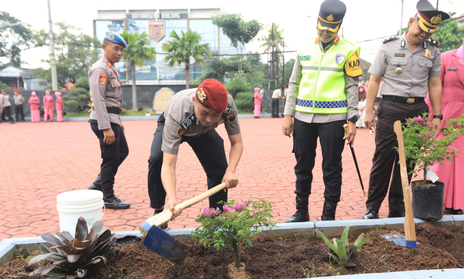 Kegiatan kenaikan pangkat kali ini terasa berbeda karena para personel yang menerima kenaikan pangkat diwajibkan melaksanakan aksi penanaman tanaman atau pohon di lingkungan Polres Semarang.