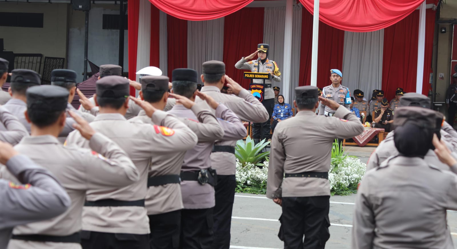 Kapolres Semarang AKBP Ratna Quratul Ainy, S.I.K., M.Si., memimpin langsung jalannya apel sekaligus membacakan amanat Kapolda Jawa Tengah Irjen Pol Ribut Hari Wibowo di hadapan seluruh peserta.