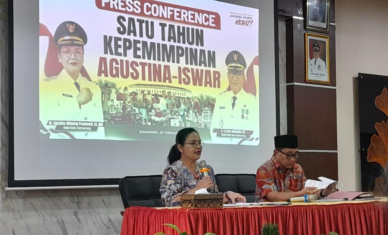Agustina – Iswar saat menyampaikan satu tahun kepemimpinan kepada awak media | foto: tim kabarjateng.id